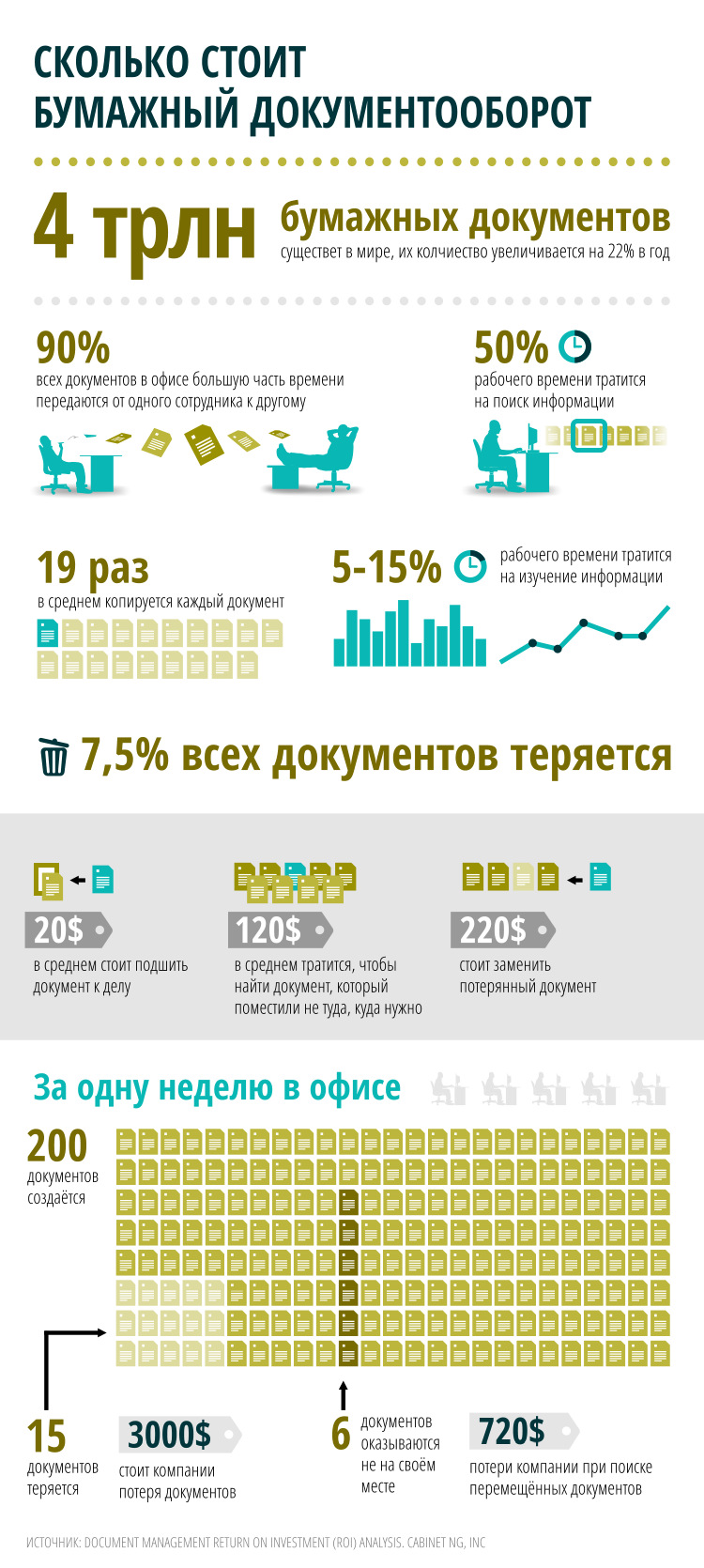 Помимо личной экономической выгоды компания, внедряя электронный документооборот, способствует сохранению окружающей среды. Также специалисты, проводившие исследование, посвященное возврату инвестиций в электронный документооборот на предприятие, пришли к выводу, что бумажный документооборот в 5 раз дороже электронного документооборота.